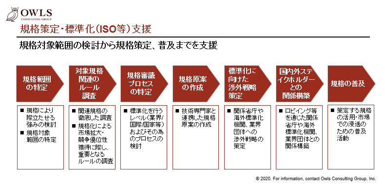 - Expertise of our consultants who participated standards and certification policy making at Industrial Science and Technology Policy and Environment Bureau of METI