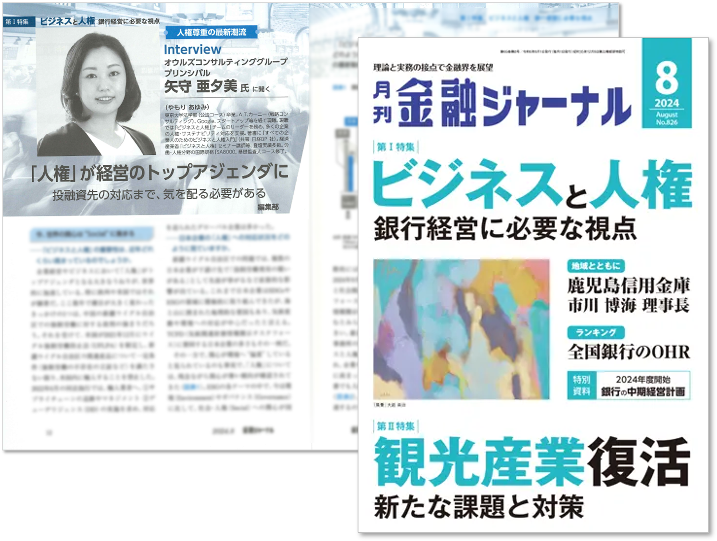 2024年8月1日(木)発売の「月刊金融ジャーナル」2024年8月号に、弊社プリンシパル 矢守亜夕美のインタビュー記事が掲載されました。